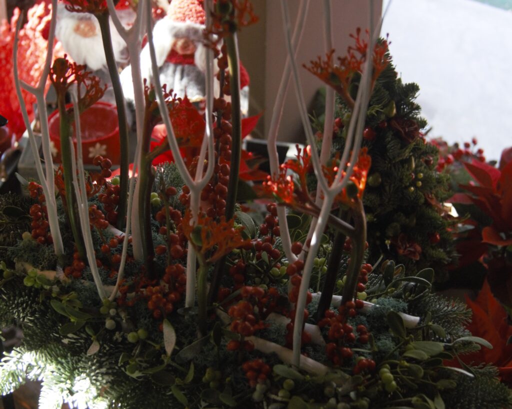L’arte floreale invernale non è solo un’esperienza visiva, ma coinvolge anche gli altri sensi. Profumi delicati e avvolgenti si diffondono nell’aria, creando un’atmosfera unica e suggestiva. Il leggero fruscio delle foglie secche e la consistenza dei petali dei fiori catturano l’attenzione e invitano al contatto diretto con la natura.