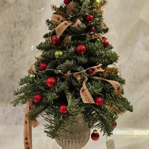 Centrotavola con fiori freschi di stagione e candela su mezza pigna in ceramica di S. Stefano di Camastra. I fiori sono disponibili nei colori pastello (come in foto) o bianco rosato. La ceramica può essere: avorio verde o blu. Diametro della mezza pigna: 15 cm. Dimensioni della composizione: Ø 35/40 cm, h. 35/40 cm.